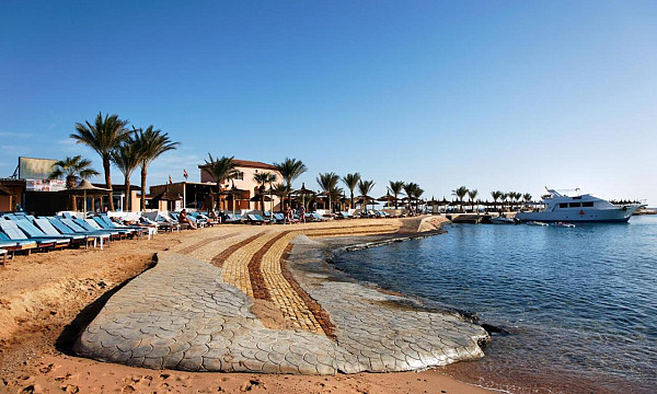 pribl. 1 km od peščeno-prodnate plaže sestrskega hotela Dana Beach (večkrat dnevno brezplačen prevoz), pribl. 13 km od letališča in 15 km od središča Hurgade.
