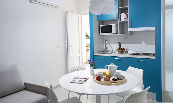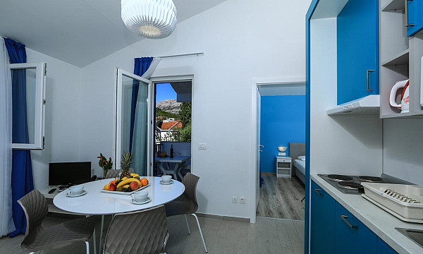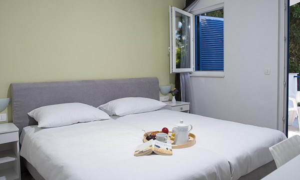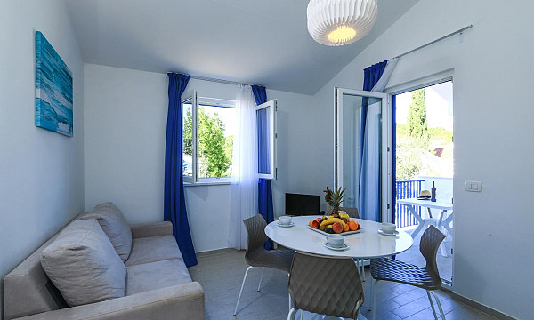 APARTMA 1/2+2 VINEA (pribl. 38 m2): spalnica z zakonsko posteljo ali dvema ločenima ležiščema, dnevni prostor z raztegljivim kavčem za 2 osebi, mini kuhinja, kopalnica (prha/kad, WC, sušilec za lase), klima, SAT TV, brezplačen WiFi, telefon, balkon ali terasa.
