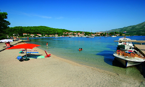 ob obali v zalivu školjk, pribl. 2 km do mesta Korčule.