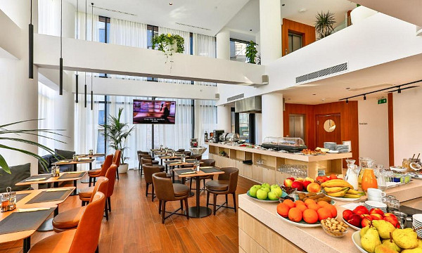 Dvoposteljne sobe: zakonska postelja ali dve ločeni ležišči, klima, kopalnica (prha, WC, sušilec za lase), SAT TV, sef, WiFi, mini bar, francoski balkon s pogledom na mesto.