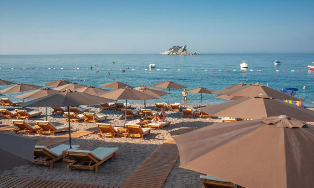 v mestecu Petrovac, ob peščeno-prodnati plaži in mestni promenadi, pribl. 18 km od Budve.