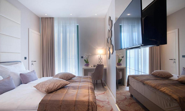 Sobe Superior: zakonska postelja ali dve ločeni ležišči, klima, kopalnica (prha, WC, sušilec za lase, kopalni plašči, copati), TV, sef, telefon, brezplačen WiFi, mini bar, grelnik za kavo ali čaj, balkon s pogledom na morje.