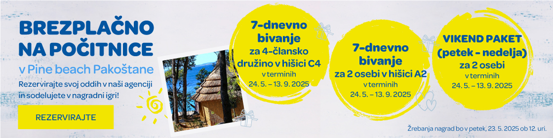 - mobilne hiške: najem mobilne hišice, uporaba elektrike in vode, posteljnina in brisače, samopostrežni zajtrk, kosilo in večerja, popoldanski prigrizki, pijača ob obrokih (točeno pivo, namizno vino, voda, brezalkoholne pijače iz šankomata), športne aktivnosti (jadranje, najem kajaka, jadranje na deski, tenis, namizni tenis, košarka, nogomet, odbojka na mivki, aerobika, vodna aerobika, vaterpolo, badminton, lokostrelstvo, mini fitnes na prostem, mini golf, adrenalinski park), dnevna in večerna animacija za odrasle in otroke, ležalniki na plaži (do zasedenosti kapacitet), zunanje parkirišče, brezplačen WiFi, turistična taksa.