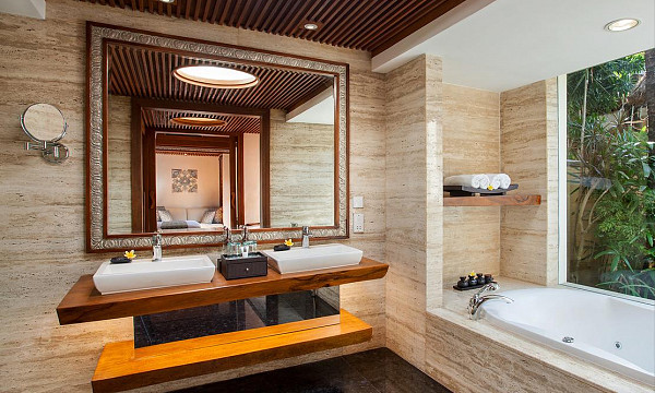 razkošni hotel se nahaja tik ob zasebni peščeni plaži, pribl. 10 min. hoje od središča Nusa Due. Transfer: pribl. 30 min.