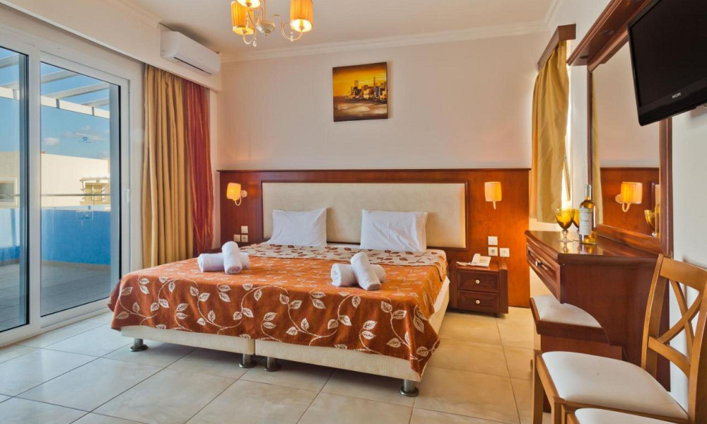 APP 1/2+3: spalnica (zakonska postelja ali dve ločeni ležišči), dnevno-spalni prostor s kuhinjsko nišo, klima, kopalnica (prha/kad, WC, sušilec za lase), SAT TV, sef, WiFi, balkon. Možnost treh dodatnih ležišč.