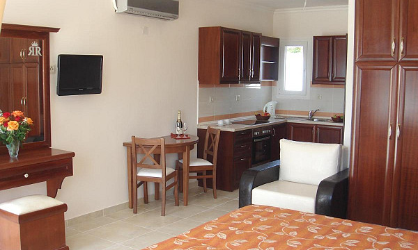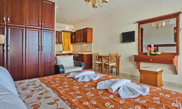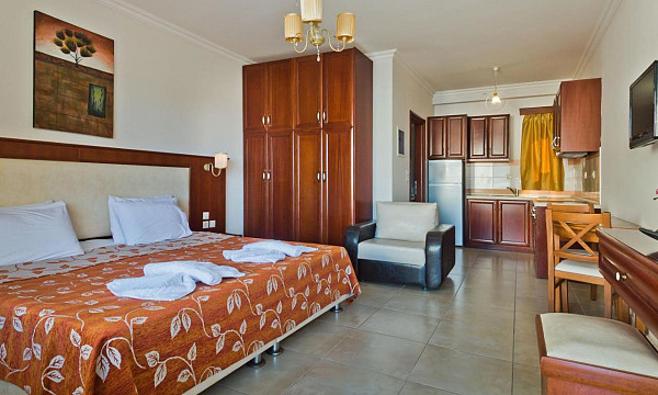 1/2+1 Studio: dnevno-spalni prostor s kuhinjsko nišo (zakonska postelja ali dve ločeni ležišči), klima, kopalnica (prha/kad, WC, sušilec za lase), SAT TV, sef, WiFi, balkon. Možnost dodatnega ležišča.