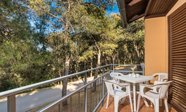 APP 4+2 (pribl. 60 m2): dve spalnici, dnevni prostor z dvema kavčema, jedilni kot, kuhinjska niša, kopalnica (kad, WC), SAT TV, telefon, WiFi (doplačilo), balkon ali terasa. Možnost dodatnega ležišča za 7. osebo (doplačilo).