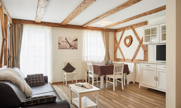 najem apartmaja, stroške elektrike, ogrevanja in vode, posteljnino in brisače, wifi, parkirišče, uporabo shrambe za smuči in smučarsko opremo.