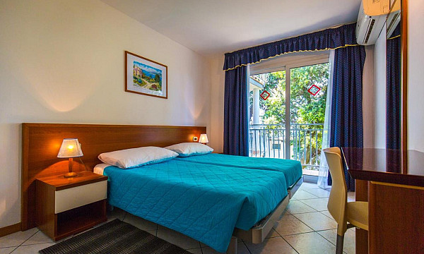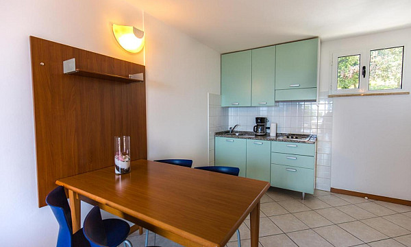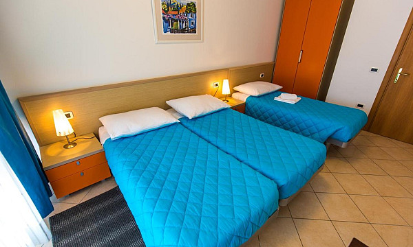 APP 1/2+2 (pribl. 32-40 m2): kuhinja (aparat za filter kavo, hladilnik z zamrzovalnikom), dnevni prostor z raztegljivim kavčem (2 ležišči), spalnica z zakonsko posteljo, kopalnica (prha, WC, sušilec za lase), klima, SAT TV, sef, telefon, balkon s sedežno garnituro.