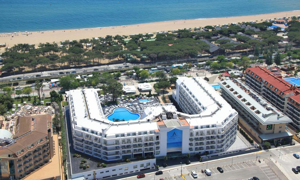v letovišču Santa Susanna, pribl. 100 m od peščeno-prodnate plaže (med hotelom in plažo je cesta in železniška proga, v bližni več podhodov), 500 m od središča Malgrat de Mar in 75 km od letališča Barcelona.