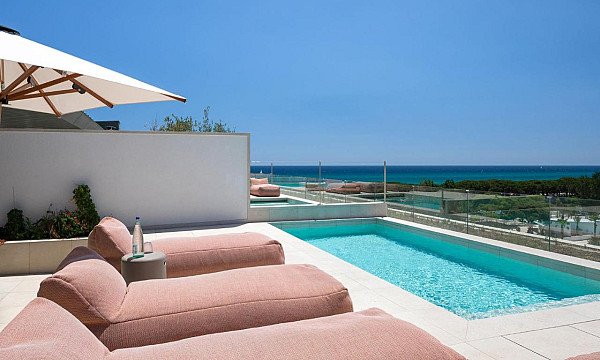 ležalniki in senčniki ob bazenu brezplačno, na plaži za doplačilo.