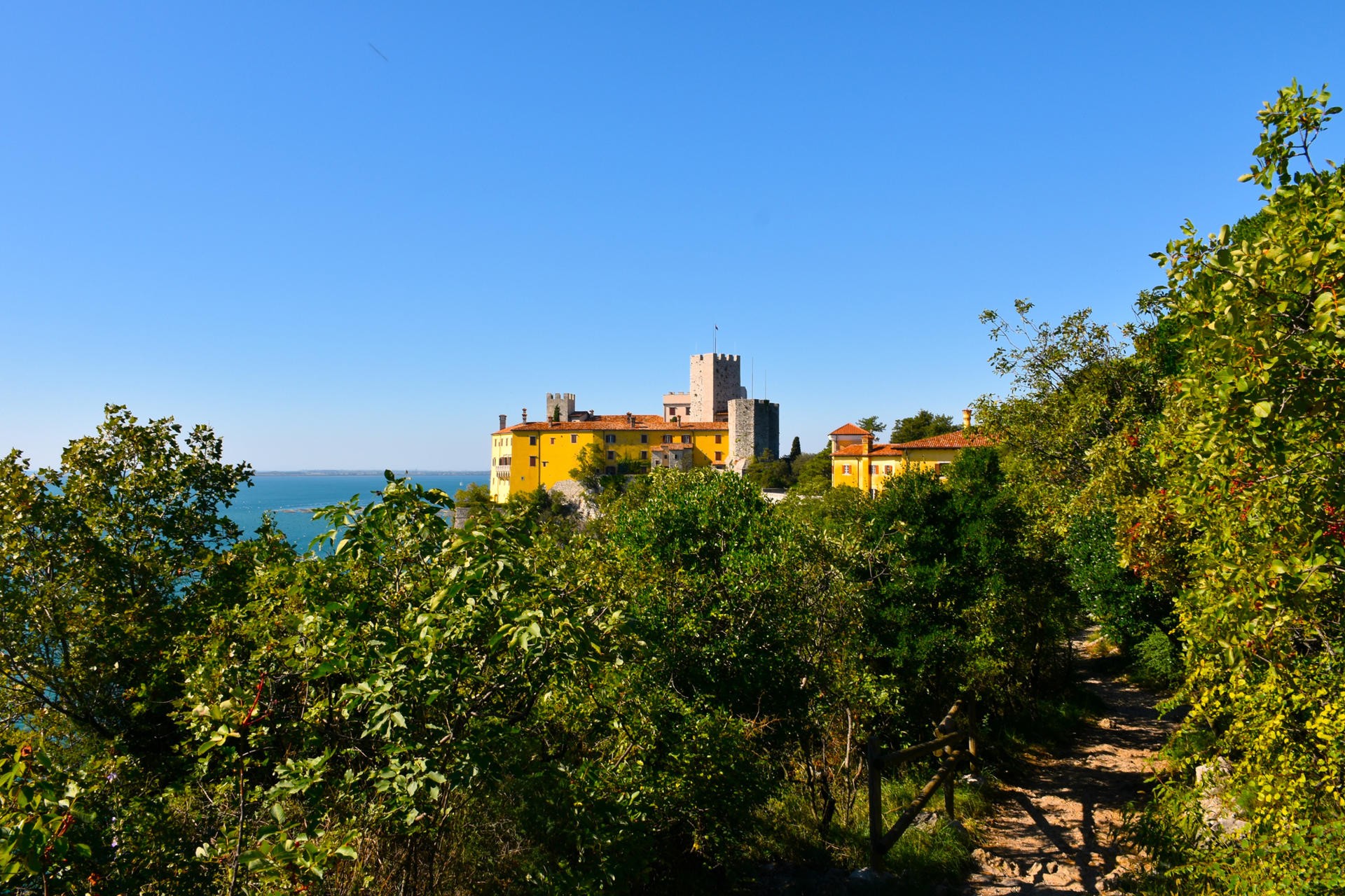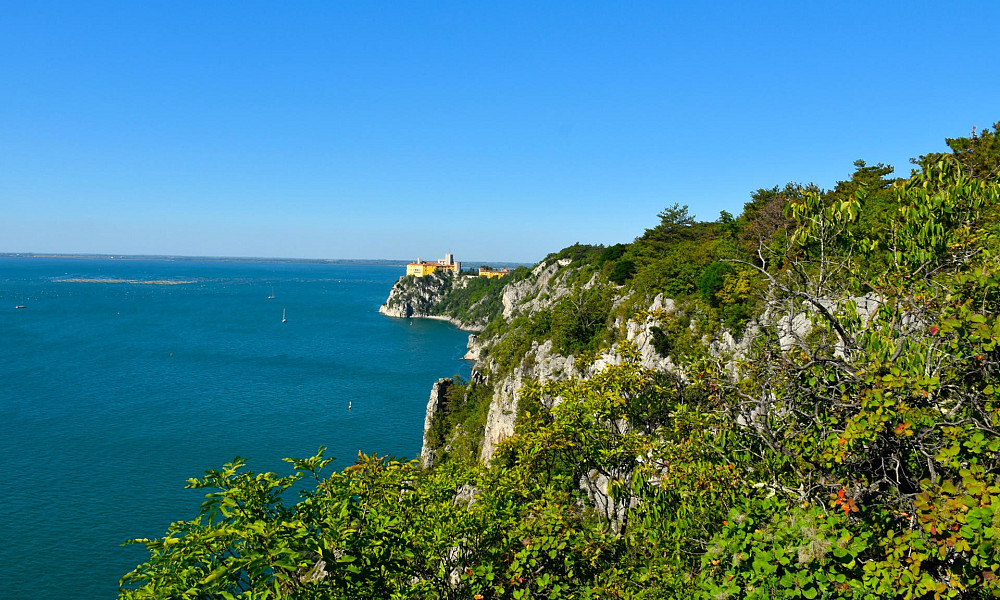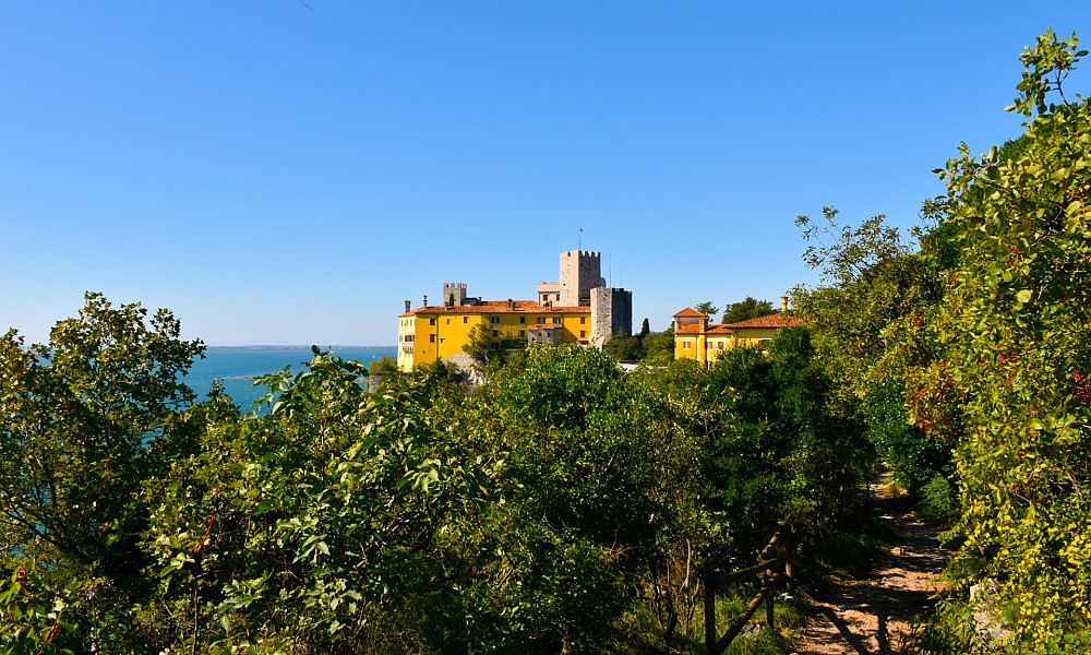 Jutranja vožnja mimo Postojne do prehoda Fernetiči in nadaljevanje do DEVINA – Nabrežina. Naselje je znano po dveh gradovih – starejši je v ruševinah, novejši pa je lepo ohranjen in izraža edinstven romantični šarm. Grad je zgrajen na kraškem grebenu, ki se vrtoglavo spušča v morje in nudi očarljiv razgled na Tržaški zaliv. Ogled mogočne graščine, ki je še danes v lasti plemiške družine Torre e Tasso in čudovito urejenih parkov. Tu je tudi t.i. Rilkejeva razgledna pešpot, ki se po strmi obali spušča do Šešljanskega zaliva. Daljši postanek.