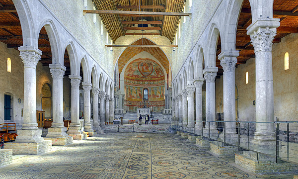 Nadaljevanje vožnje do bližnjega OGLEJA (Aquileia), sedeža oglejskih patriarhov, katerih država je segala od Donave do Bosne. V lepo ohranjeni Poponovi baziliki si bomo ogledali stare talne mozaike, ki nam bodo približale zgodbe stare zaveze in staro sveto cesto, ki se vije med cipresami in ostanki kapitelov, kipov ter drugih izkopanin tega nekdanjega pristanišča. Po želji tudi ogled kript in arheološkega muzeja.
