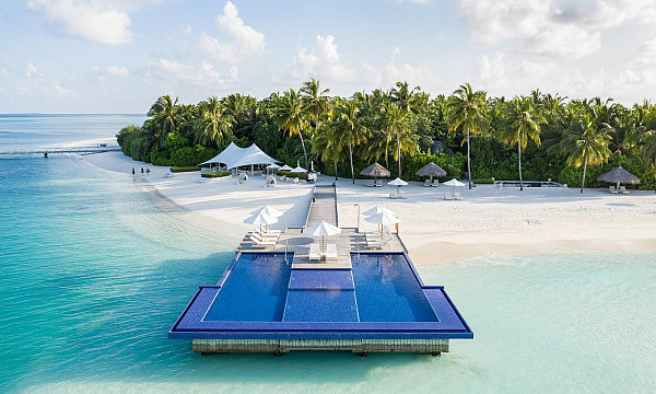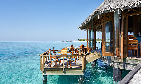 Vila na vodi (pribl. 86 m2): dnevno-spalni prostor z zakonsko posteljo, klima, stropni ventilator, kopalnica (prha, WC, sušilec za lase, kopalni plašči, copati), TV, DVD predvajalnik, telefon, WiFi, sef, mini bar, grelnik za vodo, aparat za pripravo kave in čaja, terasa z bazenom in pogledom na morje. Opomba: najnižja starost za namestitev v vilah na vodi je 14 let.