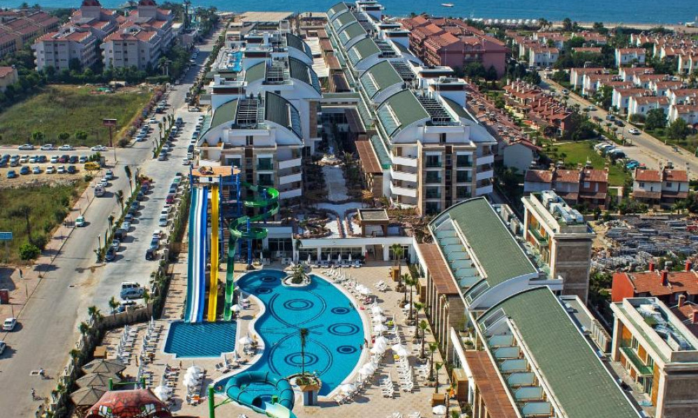 ob peščeno-prodnati plaži, na območju Bogazkent, pribl. 12 km od središča Beleka, 40 km od letališča in 50 km od mesta Antalija.