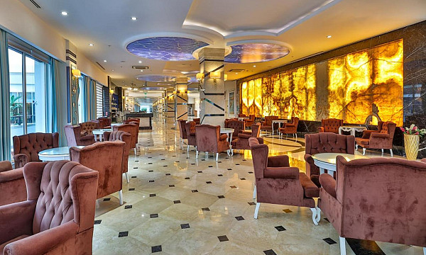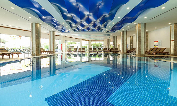 recepcija s sprejemnico, 882 sob, glavna in več a la carte restavracij, okrepčevalnice, slaščičarna, več barov, zunanji bazenski kompleks z otroškim bazenom, vodni park s sedmimi tobogani, notranji bazen, trgovinice, internetni kotiček (doplačilo), brezplačen WiFi na recepciji.
