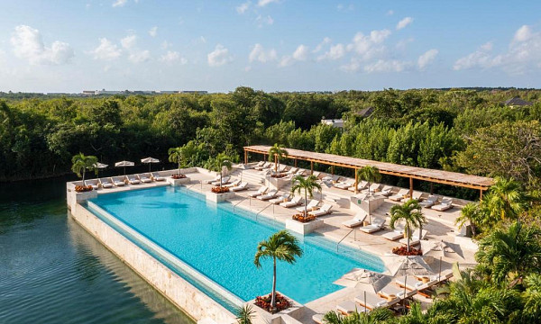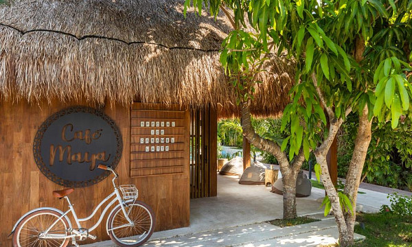 ob peščeni plaži, obdan z bujnim tropskim gozdom. Od Playa del Carmen je oddaljen 6 km. letališča Cancun je oddaljeno 60 km.