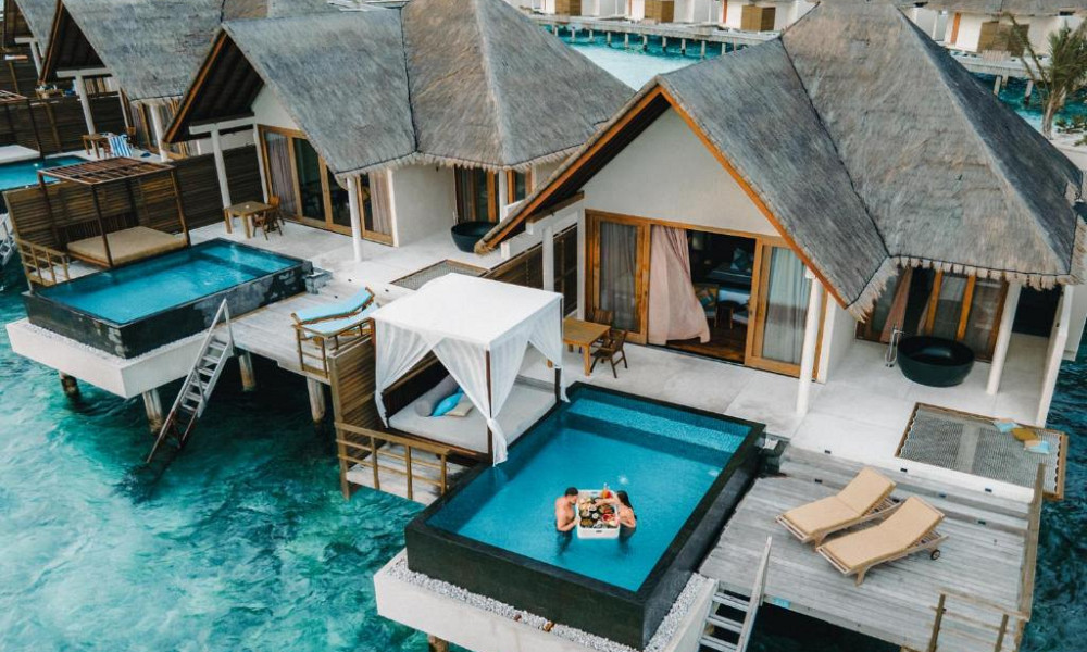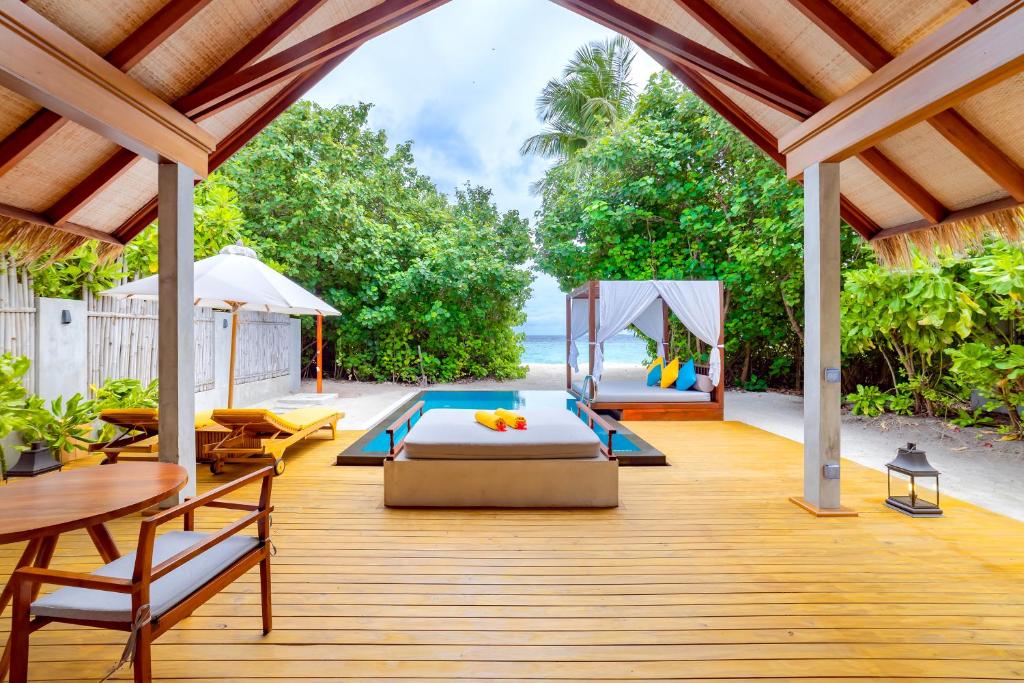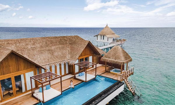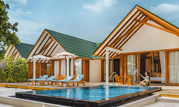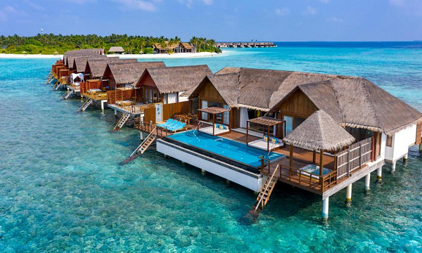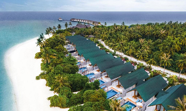 Letovišče obsega 168 elegantnih in izjemno prostornih vil v tipičnem maldivijskem stilu (moderne, svetle in odete v pastelne odtenke).