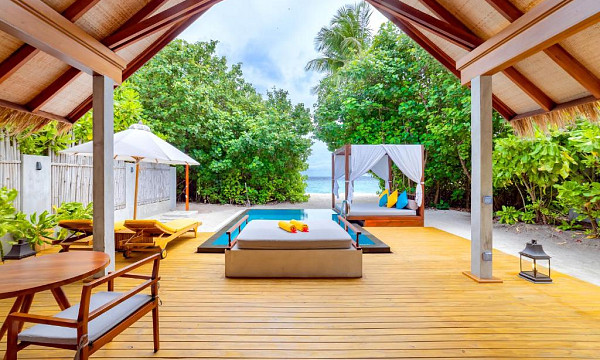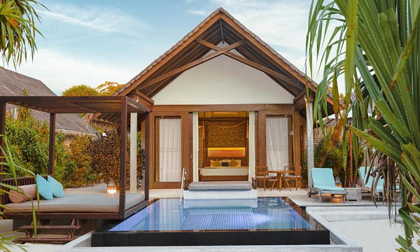 - Vila na plaži z zasebnim bazenom (155 m2); Elegantna pritlična vila z zasebnim 6-metrskim bazenom s pogledom na peščeno plažo in turkizno laguno z zasebnim dvoriščem. Nudi zasebno teraso za sončenje s predelom za sedežno garnituro, jedilnico ter kopalnico na prostem. Opremljena je s klimatsko napravo, predelom za sedenje, TV-jem, telefonom, kavčem, hladilnikom z mini-barom, prostorom za pripravo kave/čaja, kopalnico z masažno kadjo ter pisalno mizo. Vila je primerna za 2 odrasla + otroka + dojenčka ali 3 odrasle osebe + dojenčka. V sobi je ena zakonska postelja, dodatno je mogoče urediti eno ležišče.