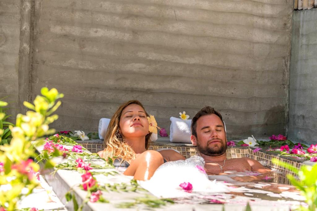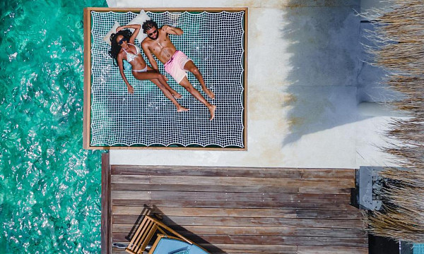 - Vila na vodi (98 m2); Elegantna vila stoji nad turkizno laguno in je povezana z otrokom prek lesenega mostu. Ponuja teraso z ležalniki in zunanji jedilni predel. Opremljena je s klimatsko napravo, predelom za sedenje, TV-jem, telefonom, kavčem, hladilnikom z mini-barom, prostorom za pripravo kave/čaja, kopalnico s kadjo ali prho ter pisalno mizo. Vila je primerna za 2 odrasla + otroka + dojenčka ali 3 odrasle + dojenčka. V sobi je ena zakonska postelja, dodatno je mogoče urediti eno ležišče.