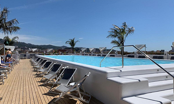 ležalniki in senčniki ob bazenu brezplačno, na plaži za doplačilo.