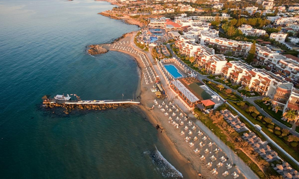 ob peščeni plaži, pribl. 2 km od Malie, 1 km od Stalisa in 32 km od Herakliona.