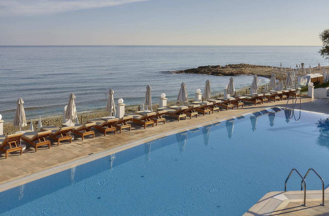 senčniki in ležalniki ob bazenu in na plaži brezplačno, kopalne brisače.