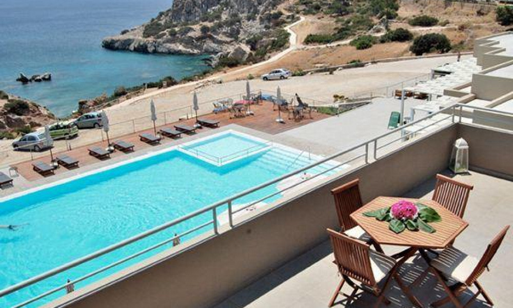 pribl. 100 m od plaže, v vasici Amoopi, 6 km od mesta Pigadia in 12 km od letališča.