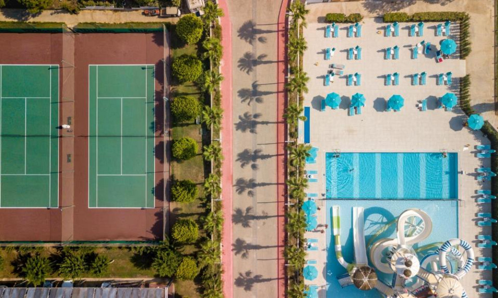 recepcija s sprejemnico, glavna in več a la carte restavracij, več barov, kavarna, brezplačen WiFi na recepciji, zunanji bazenski kompleks s tobogani, notranji bazen, trgovina s spominki, mini market, konferenčne dvorane, frizerski salon.