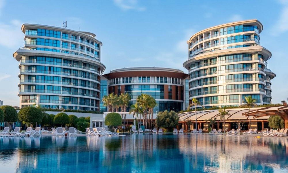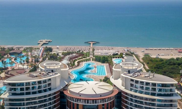 ob lastni peščeni plaži na področju Lare, pribl. 18 km od središča Antalije in 15 km od letališča.