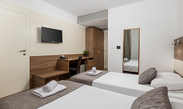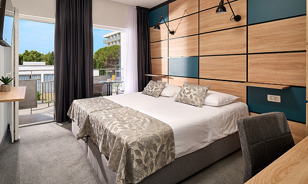 1/2+1 BP Superior (pribl. 24 m2): zakonska postelja ali dve ločeni ležišči, kopalnica (kad, WC, sušilec za lase), klima, SAT TV, telefon, WiFi, aparat za pripravo kave in čaja, balkon na park stran. Možnost dodatnega ležišča za otroka do 13 let.