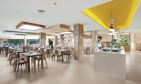 samopostrežni zajtrk in večerja s show cooking-om, 2x tedensko tematski večer, večerja strežena v dveh delih. Opoldanski prigrizki z doplačilom.