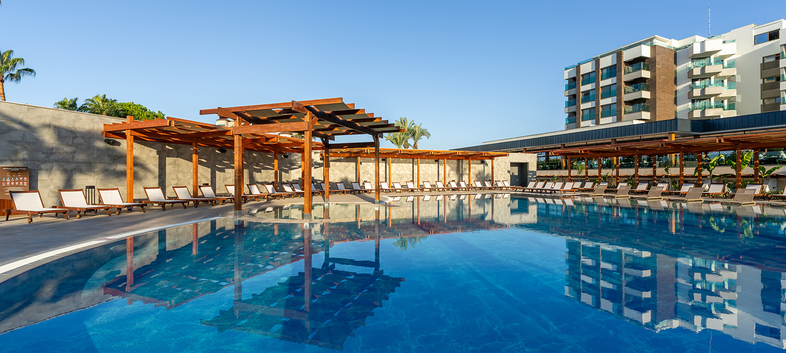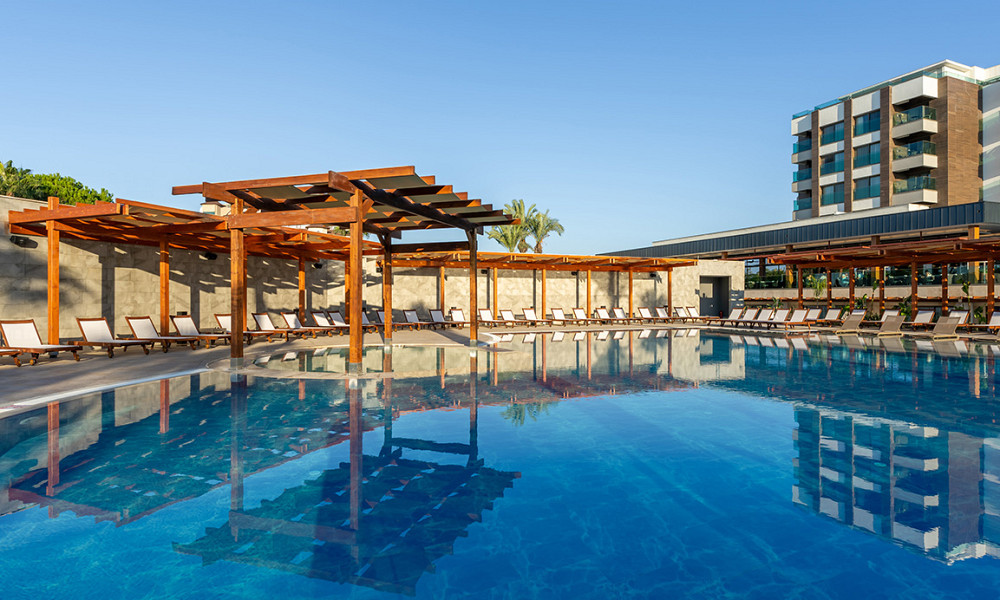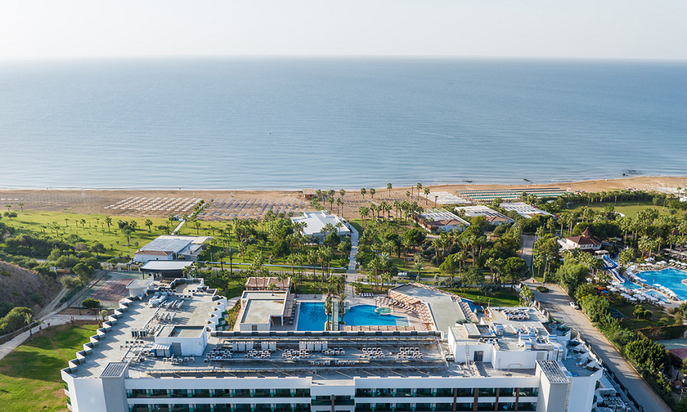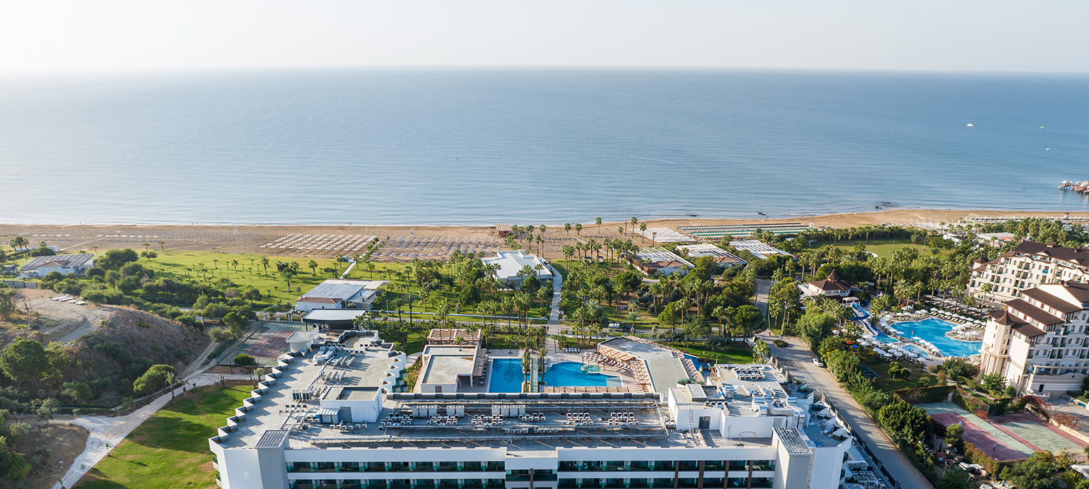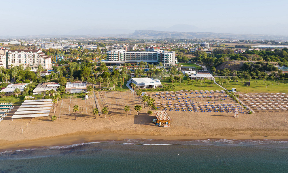 ob peščeni plaži, pribl. 10 km od Side in 60 km od letališča Antalya.