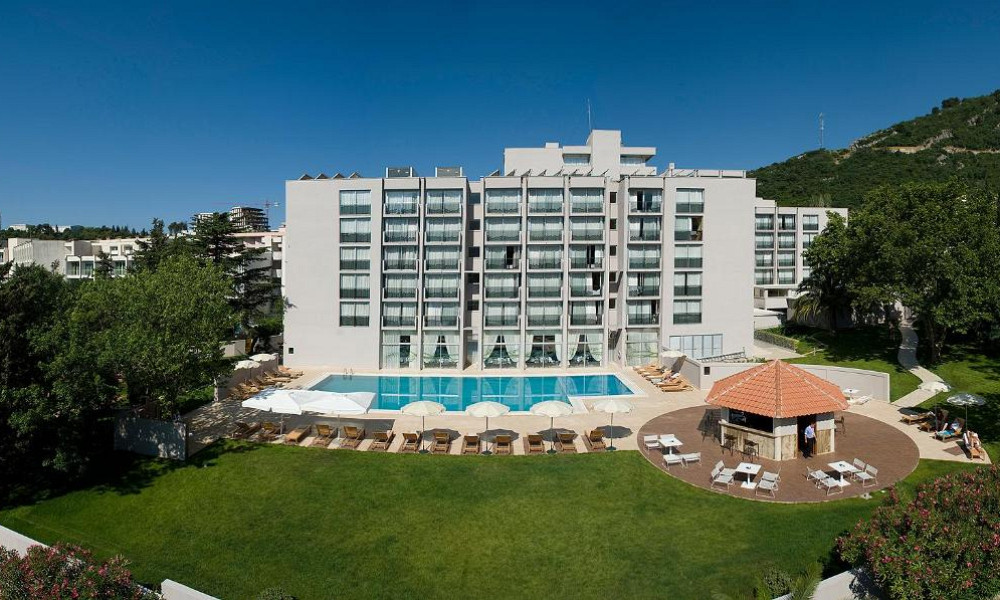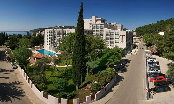 na robu Bečičev, pribl. 200 m od prodnato-peščene plaže in 2 km od Budve.
