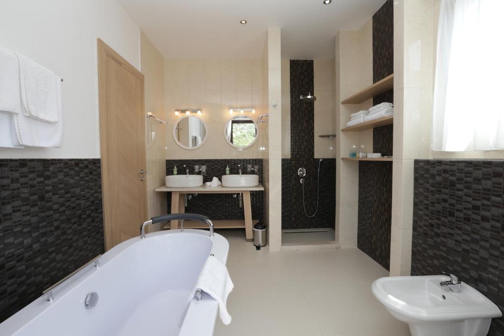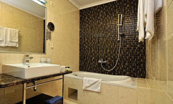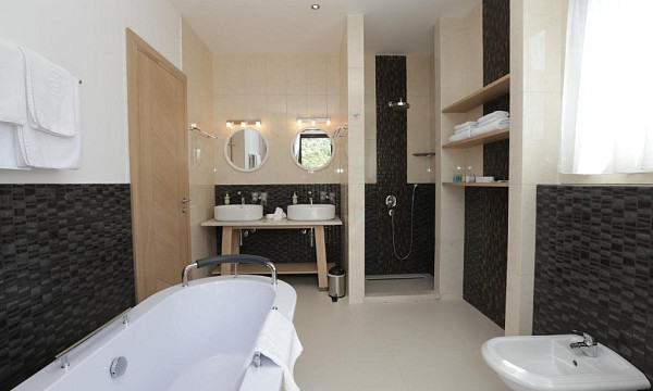 Dvoposteljne sobe: zakonska postelja ali dve ločeni ležišči, klima, kopalnica (prha, WC, sušilec za lase, copati), LCD TV, mini bar (doplačilo).