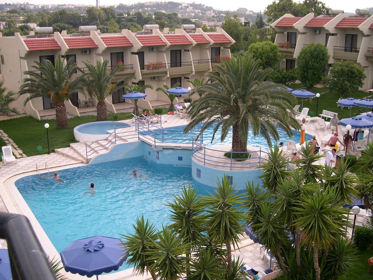 pribl. 150 m od peščeno-prodnate plaže (obalna cesta), pribl. 1 km vasice Koskinou, 4 km do mesta Rodos, 20 km do letališča.