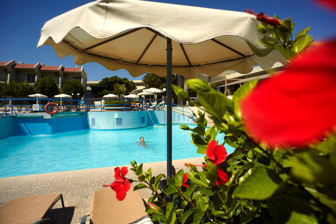 senčniki in ležalniki ob bazenu brezplačno, na plaži za doplačilo. Možnost najema kopalnih brisač.