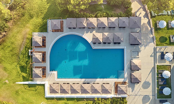 senčniki in ležalniki ob bazenu in na plaži brezplačno (omejeno število).