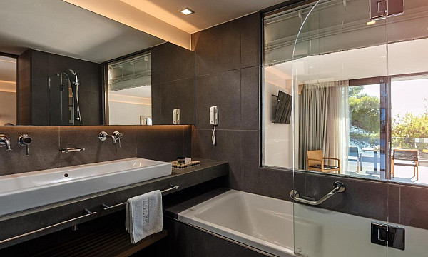 Dvoposteljne sobe: zakonska postelja ali dve ločeni ležišči, klima, kopalnica (prha/kad, WC, sušilec za lase), SAT TV, sef, mini bar (doplačilo), balkon. Možnost dodatnega ležišča.