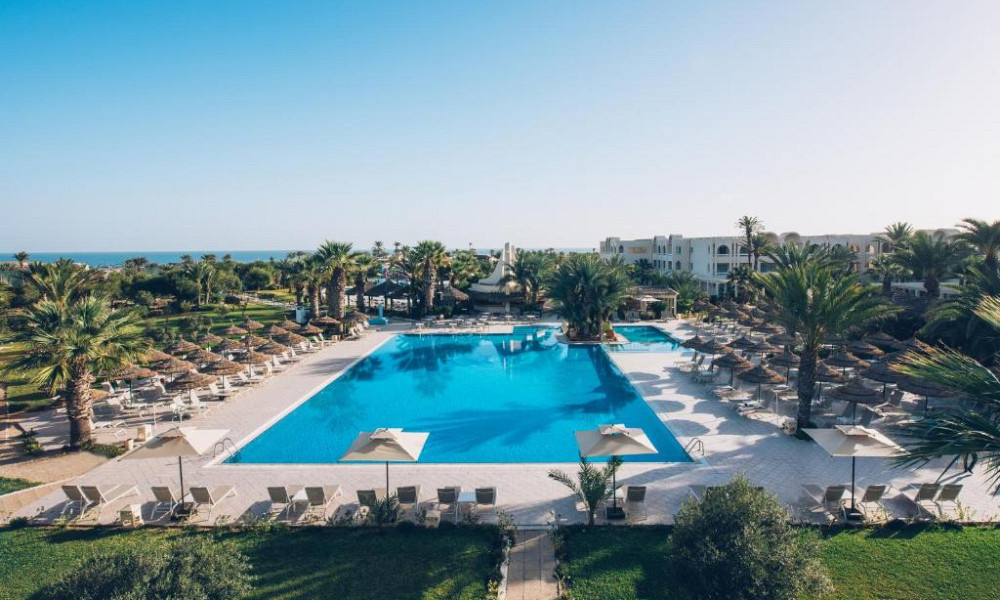 ob peščeno-prodnati plaži Sidi Akkour, pribl. 5 km od Midouna in 18 km od glavnega mesta Houmt Souk.