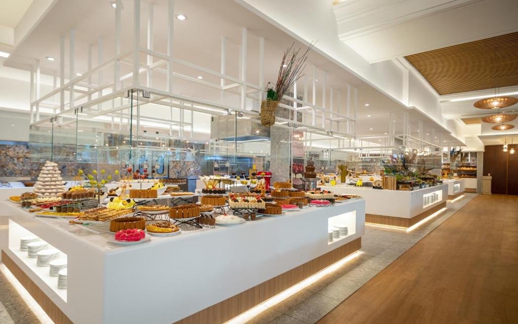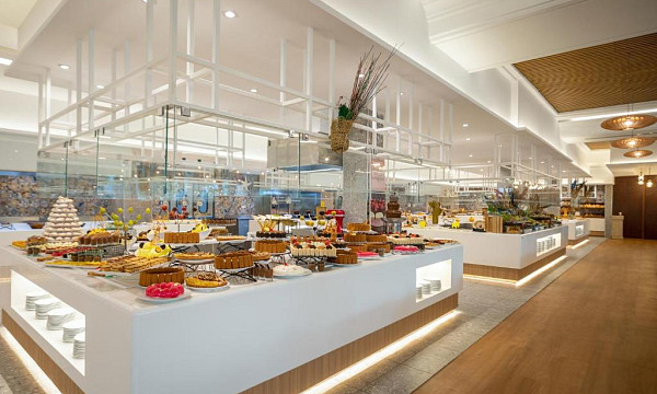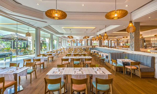 recepcija s sprejemnico, 300 sob, samopostrežna restavracija, bar ob bazenu in na plaži, 2 zunanja bazena, vodni park s tobogani, notranji bazen, fitnes, manjša trgovinica.
