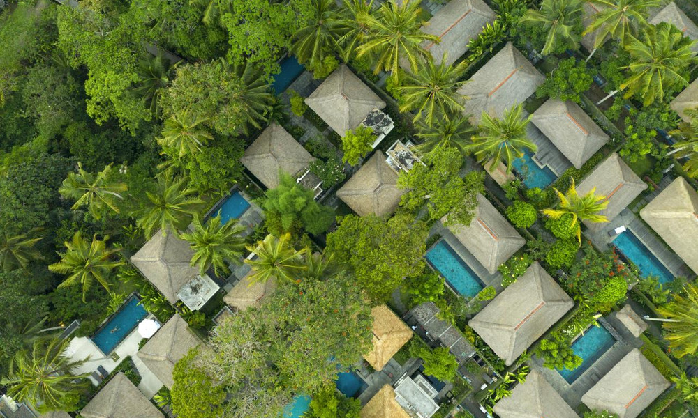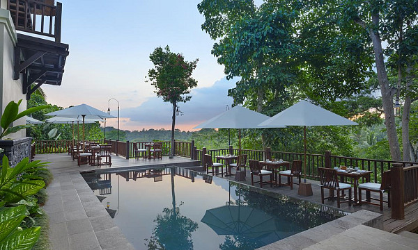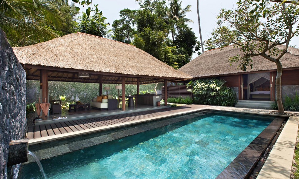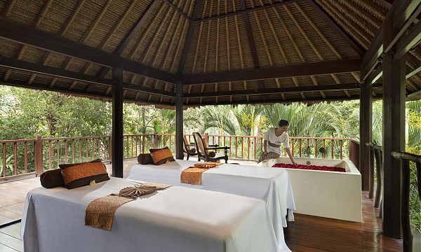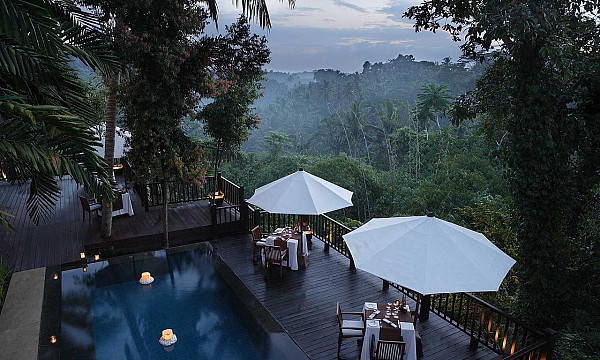 razkošen resort obdan z bujnim tropskim rastlinjem se nahaja pribl. 1 km od Ubuda. Transfer do letališča: pribl. 1,5 ure.
