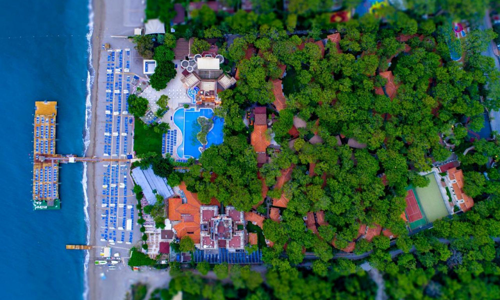 ob peščeno-prodnati plaži, pribl. 10 km od Kemerja in 50 km od letališča Antalija.