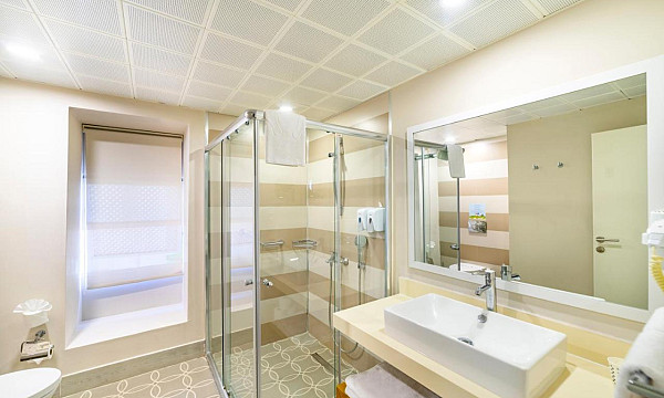 Družinske sobe: spalnica in optično ločen dnevno-spalni prostor, klima, kopalnica (prha/kad, WC, sušilec za lase), SAT TV, telefon, sef (doplačilo), mini bar, balkon ali terasa.