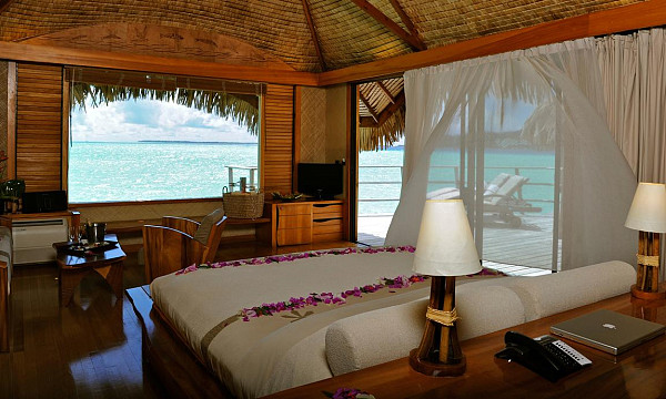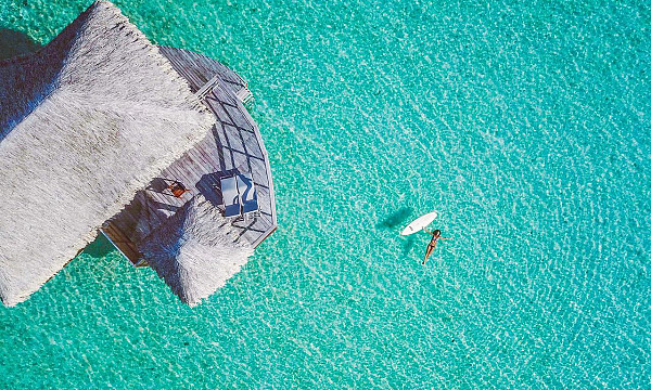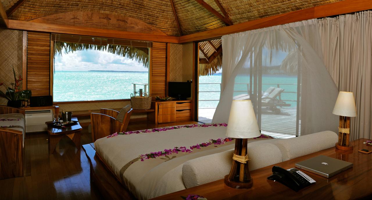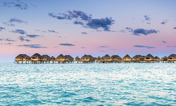 Vila na vodi Taha'a Suita (pribl. 80-90 m2): dnevno-spalni prostor, klima, kopalnica (prha, kad, WC, sušilec za lase, kopalni plašči, copati), zunanja prha, TV, telefon, sef, mini bar, aparat za pripravo kave in čaja, terasa z neposrednim dostopom v morje.