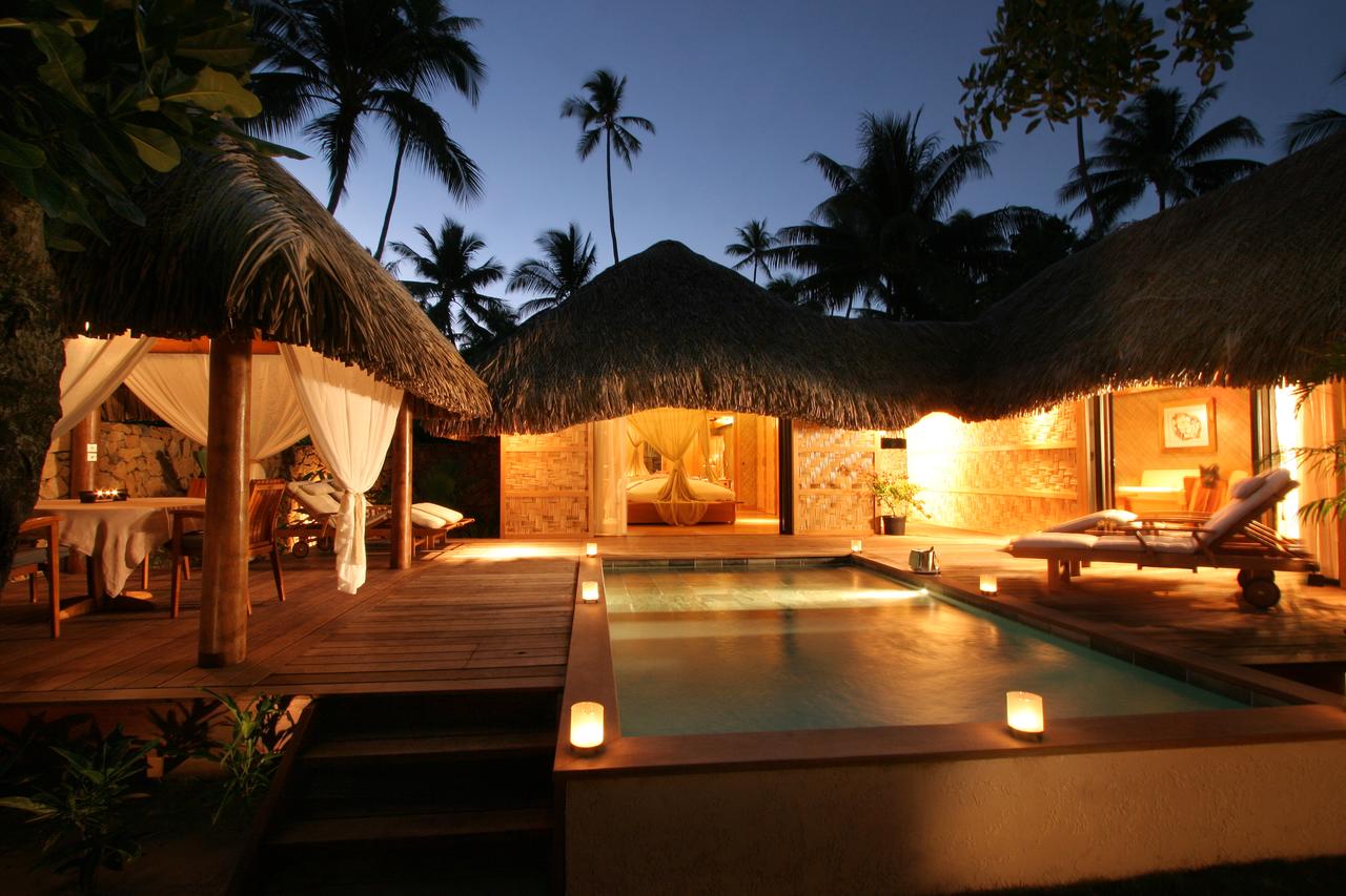 Vila na plaži z bazenom (pribl. 150-200 m2): dnevni prostor, spalnica, klima, kopalnica (prha, kad, WC, sušilec za lase, kopalni plašči, copati), zunanja prha, TV, telefon, sef, mini bar, aparat za pripravo kave in čaja, terasa z zasebnim bazenom in neposrednim dostopom do plaže.