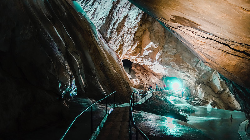- Eisriesenwelt (največja ledeniška jama na svetu, odkrita l. 1879, 42 km dolga, za ogled je na voljo 1 km jame s prekrasnimi ledenimi kapniki),