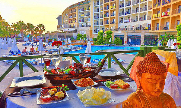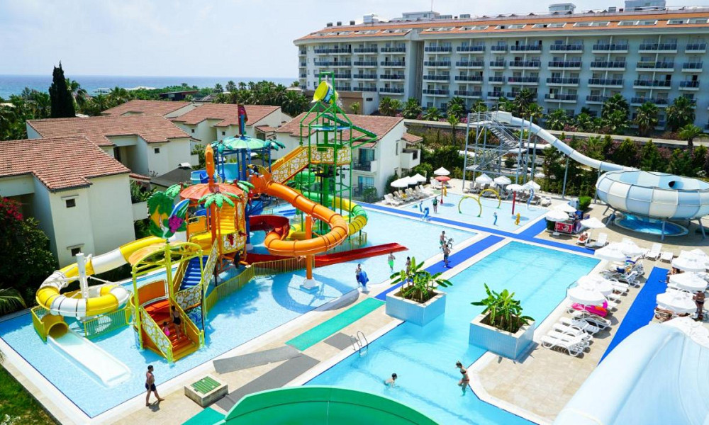 recepcija s sprejemnico, 295 sob, dve glavni in več a la carte restavracij, slaščičarna, več barov, velik zunanji bazenski kompleks, notranji bazen, vodni park s tobogani, mini market, butik, frizerski salon, brezplačen WiFi na recepciji, zunanje parkirišče.