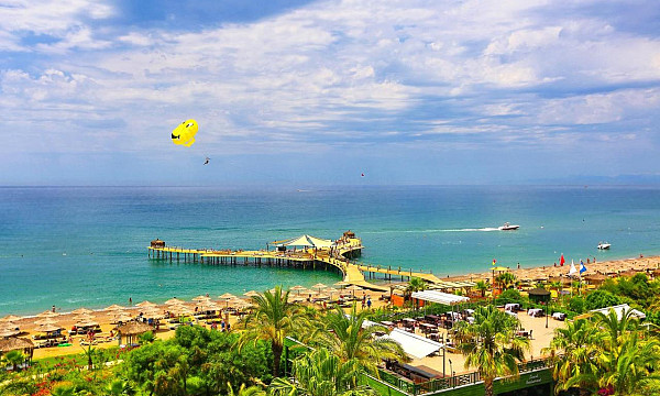 ob peščeno-prodnati plaži, pribl. 19 km od Side in 80 km od letališča Antalya.