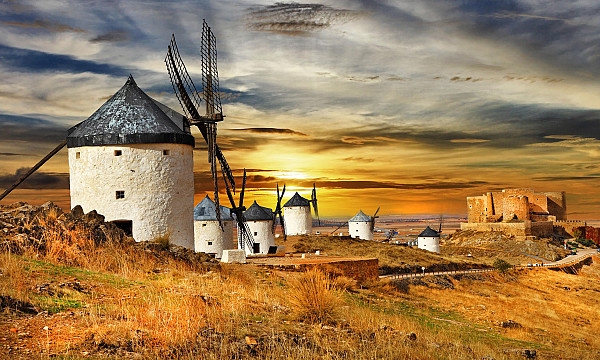 - Madrid (najdaljša ulica Passeo de la Castellana, stadion nogometnega kluba Real - Bernabeu, trg Cibeles z vodnjakom Kibele, mestna vrata Alcala, arena za bikoborbe Las Ventas, Plaza Espana in trg s kipom Don Kihota, poslovna ulica Gran Via, mestni park Retire, kraljeva palača v neoklasicističnem slogu z 2800 sobami, opera Teatro Real, trg Mayor, trg Puerta del Sol »srce Madrida«, …),